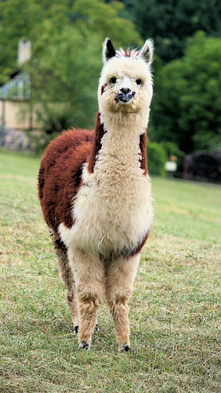 alpaca, white alpaca, brown alpaca, standing alpaca, animal wallpaper, farm animal wallpaper, llama wallpaper (similar animal), camelid wallpaper (animal family), fluffy wallpaper, soft wallpaper, cute wallpaper, adorable wallpaper, peaceful wallpaper, nature wallpaper, wildlife wallpaper